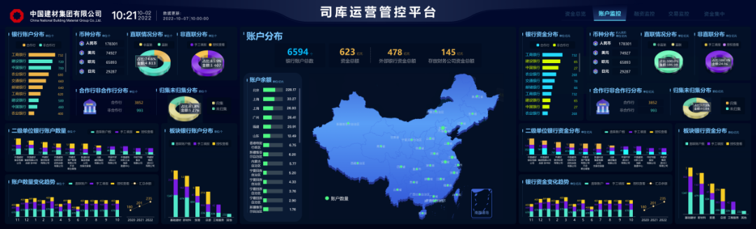 在建设时代,,,,,团结集团账户管理的重大性、各异性,,,,,凭证国资委羁系要求,,,,,集团建设了统一的金融数据标准、数据剖析规则和资金管理指标系统。。。。。。。借助云盘算、数据中台、RPA平台、BI剖析等金融科技手段,,,,,通过多种可视化手艺路径实现全集团资金信息可视、多维度数据剖析可视,,,,,为集团金融资源设置战略决议提供有力的数据支持,,,,,进一步提升了集团财务管理精益化、集约化、数字化和智能化水平。。。。。。。