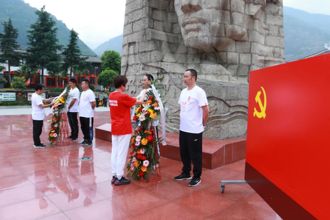 在大渡河畔,,,,, ,,,红军战士头像雕塑前,,,,, ,,,全体党员怀着敬重的心情,,,,, ,,,向在此牺牲的革命先烈敬献花篮,,,,, ,,,向革命先烈致以高尚敬意。。。。。