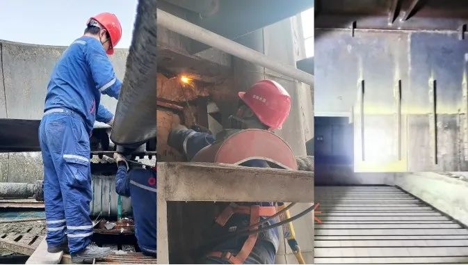 面临今年篦冷机技改后,,,,,,余热发电系统吨熟料发电量较低的情形,,,,,,公司连忙建设攻关小组,,,,,,对影响因素逐项排查并改善,,,,,,对循环水池冷却风机叶片角度举行调解,,,,,,对玻璃钢冷却塔漏风点举行封堵,,,,,,对凝汽器、前置冷却器等举行化学高压洗濯,,,,,,对内外密封举行优化,,,,,,把篦冷机旁路挡风墙向篦冷机尾部移位,,,,,,并将挡风墙异形设计(比妄想中的改管道镌汰投资70万元)。。。。。通过一系列技改项目实验,,,,,,吨熟料发电量提高了3kWh/t,,,,,,年收益可达120万元。。。。。