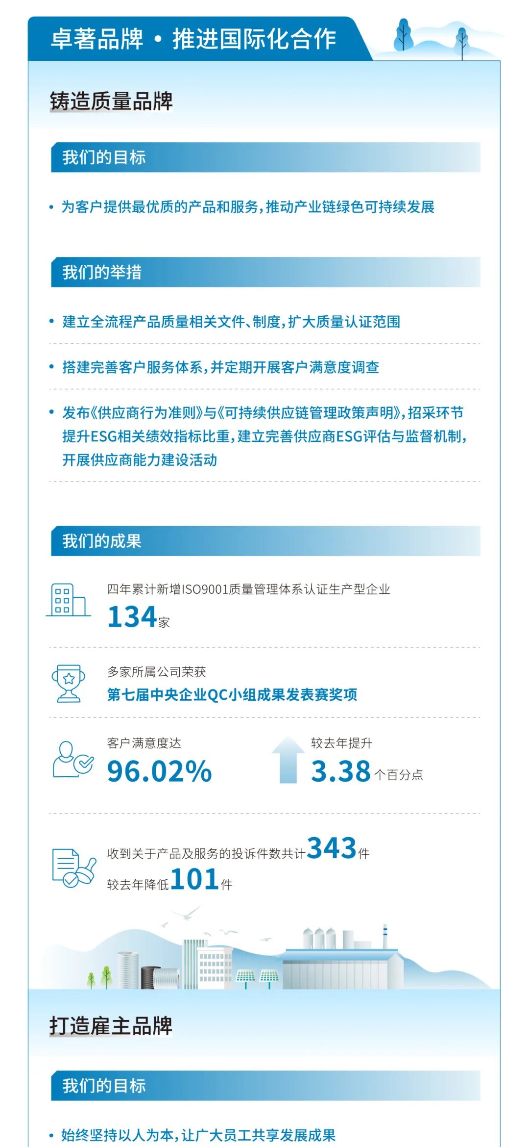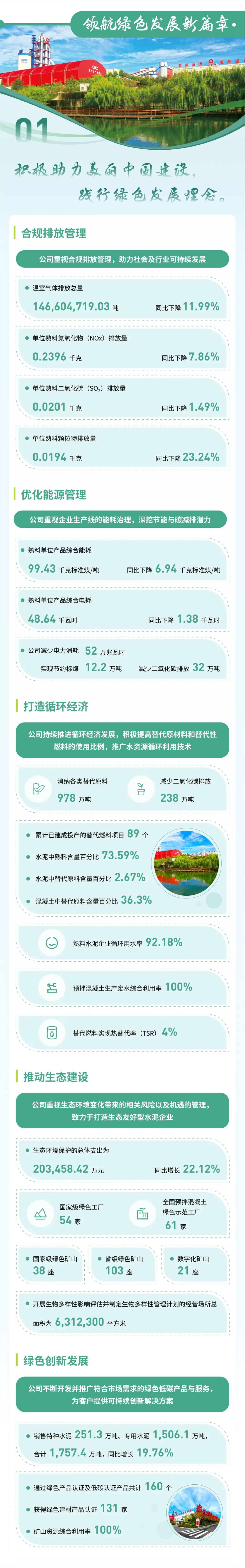 泉源:韦德网站官方入口股份、天山股份 宣布时间:2025-04-07作为“中央企业ESG同盟”首批成员企业,,,,,,,,韦德网站官方入口集团起劲践行ESG理念,,,,,,,,以“质料创造优美天下”为使命,,,,,,,,坚持“善用资源、服务建设”的焦点理念,,,,,,,,承继“立异、绩效、协调、责任”的焦点价值观,,,,,,,,追讨情形、社会及管治的协调共赢,,,,,,,,将ESG理念最终落着实市场绩效、科技立异、节能环保、员工关爱、企业公民等履责实践之中,,,,,,,,并一直建设健全ESG事情机制与管理系统,,,,,,,,起劲推动成员企业披露专项报告。。。。。。现在,,,,,,,,已实现集团所属13家上市公司ESG专项报告披露“全笼罩”。。。。。。