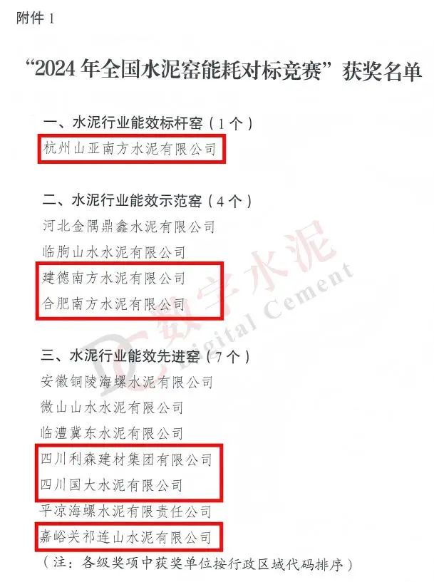 “2024年天下水泥窑能耗对标竞赛”获奖名单