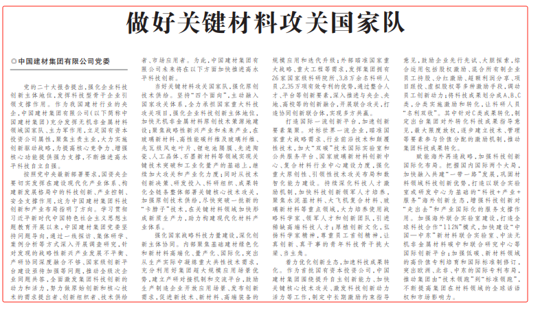 《科技日报》:做好要害质料攻关国家队
