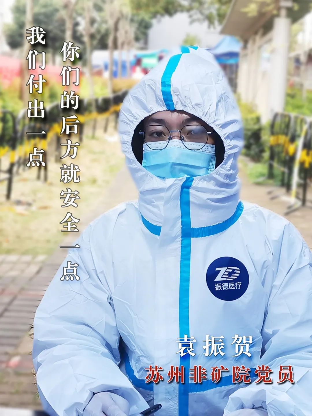 “穿上防护服, ,, ,,, ,,我们就是战士!”