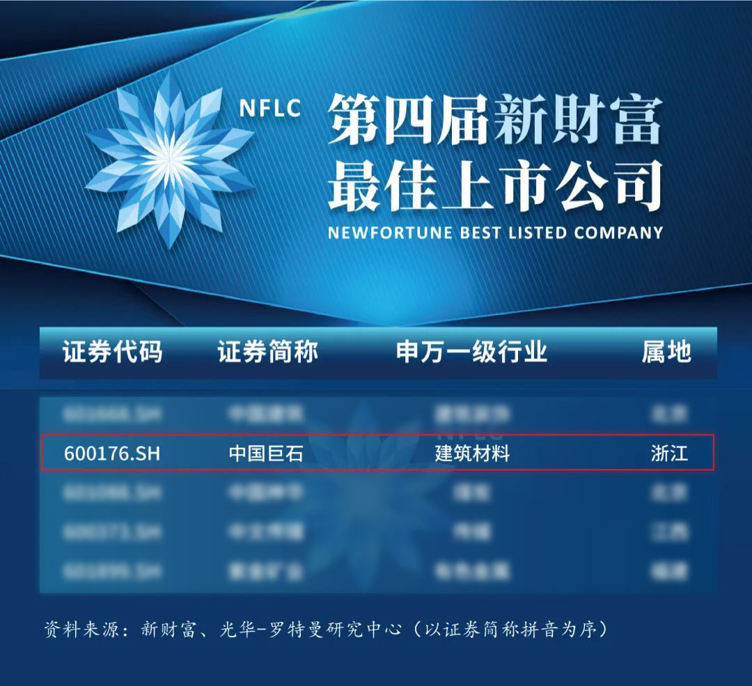 Öйú¾ÞʯÈÙ»ñµÚËĽìвƲú¡°×î¼ÑÉÏÊй«Ë¾¡±