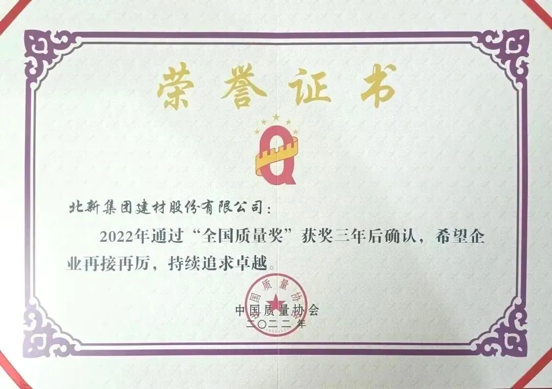 克日,,,,,,主题为“共创高质量生长新未来:新领域、新要素、新实践”的2022中国质量协会年会在北京召开。。。。。。。。大会宣布了第十八届天下质量奖企业通过确认组织名单,,,,,,集团所属北新韦德网站官方入口顺遂通过获奖三年后简直认评审。。。。。。。。天下质量奖是对企业实验卓越绩效模式,,,,,,并在质量、经济、社会效益等方面取得显著效果的组织授予的海内质量管理的最高声誉。。。。。。。。此次顺遂通过确认评审,,,,,,是对北新韦德网站官方入口在追求卓越、提升产品品质、实现高质量生长方面取得效果的充分一定。。。。。。。。