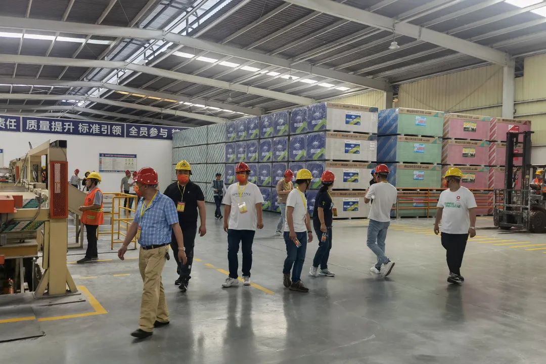 泰山石膏重庆公司特邀重庆市江津区综合保税区、生态情形局、珞璜镇顺江社区住民委员会,,,,,,,重庆市墙体质料工业行业协会及重庆区域公司经销商等旅行重庆公司石膏板生产现场,,,,,,,为企业与公众之间建设了相同交流的平台,,,,,,,展现了泰山石膏优异的生产管理秩序和绿色生长效果。。。。。。