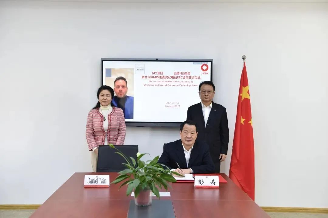 1月29日,,,,,凯盛科技与金顶资源控股集团通过视频连线,,,,,签署了总金额超亿欧元的波兰地面光伏电站二期200兆瓦总承包条约。。。。。这是继2020年2月双方开展新能源国际合作后的再度联手,,,,,进一步批注凯盛科技新能源营业综合实力抵达国际一流水平。。。。。