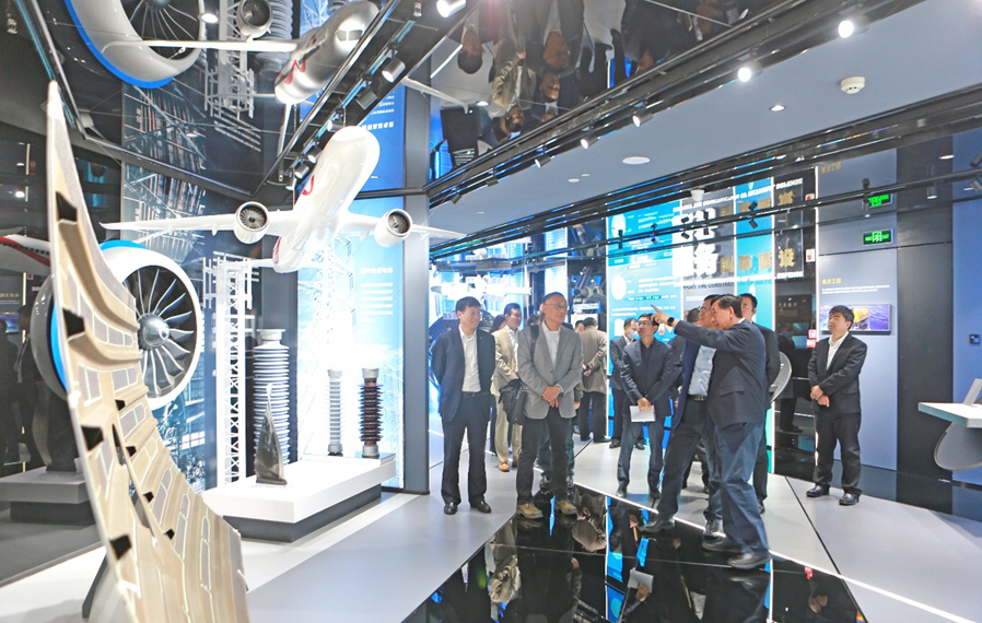座谈会前,,,,,,,,李新华陪同武钢旅行了集团展厅。。。。。